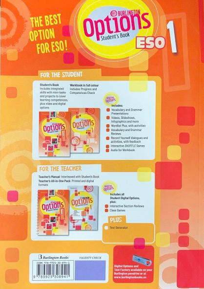1º ESO OPTIONS STUDENT´S BOOK 9789925308941 BURLINGTON 2022 (NUEVO)-Pedido a proveedor