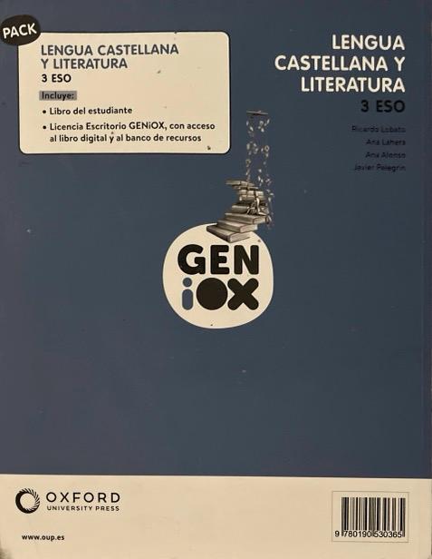 3º ESO LENGUA CASTELANA Y LITERATURA GENIOX 9780190530365 OXFORD UNIVERSITY PRESS 2022 (NUEVO)-Pedido a proveedor