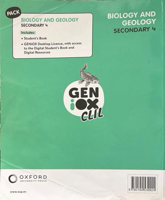 4º ESO BIOLOGY & GEOLOGY 4 STUDENT´S BOOK GENIOX CLIL 9780190539924 OXFORD UNIVERSITY PRESS 2023 (USADO)