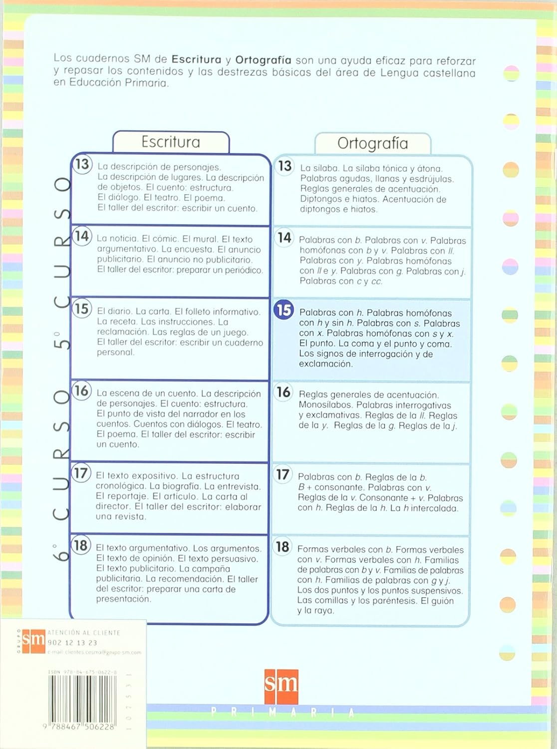 5º PRIMARIA CUADERNO DE ORTOGRAFIA N.º 15 :-CASTELLANO 9788467506228 EDICIONES SM 2006 (NUEVO)
