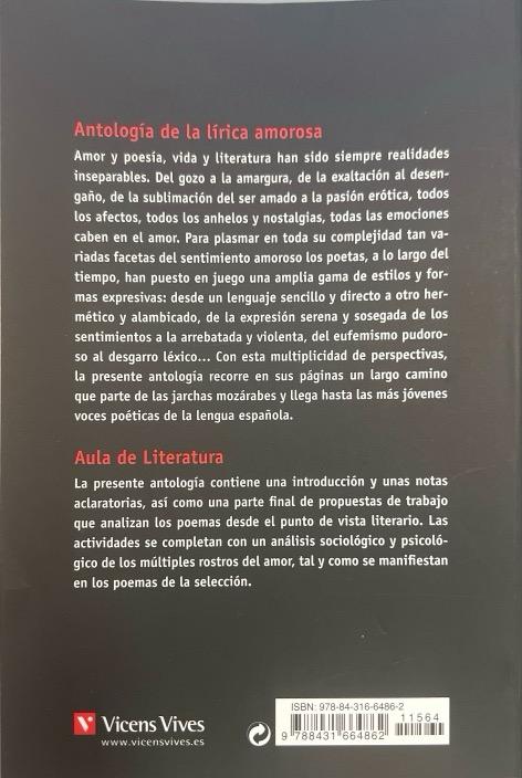 ANTOLOGÍA DE LA LÍRICA AMOROSA:-AULA DE LITERATURA N.º 09 MANUEL OTERO TORAL 9788431664862 VICENS-VIVES 2012 (USADO)
