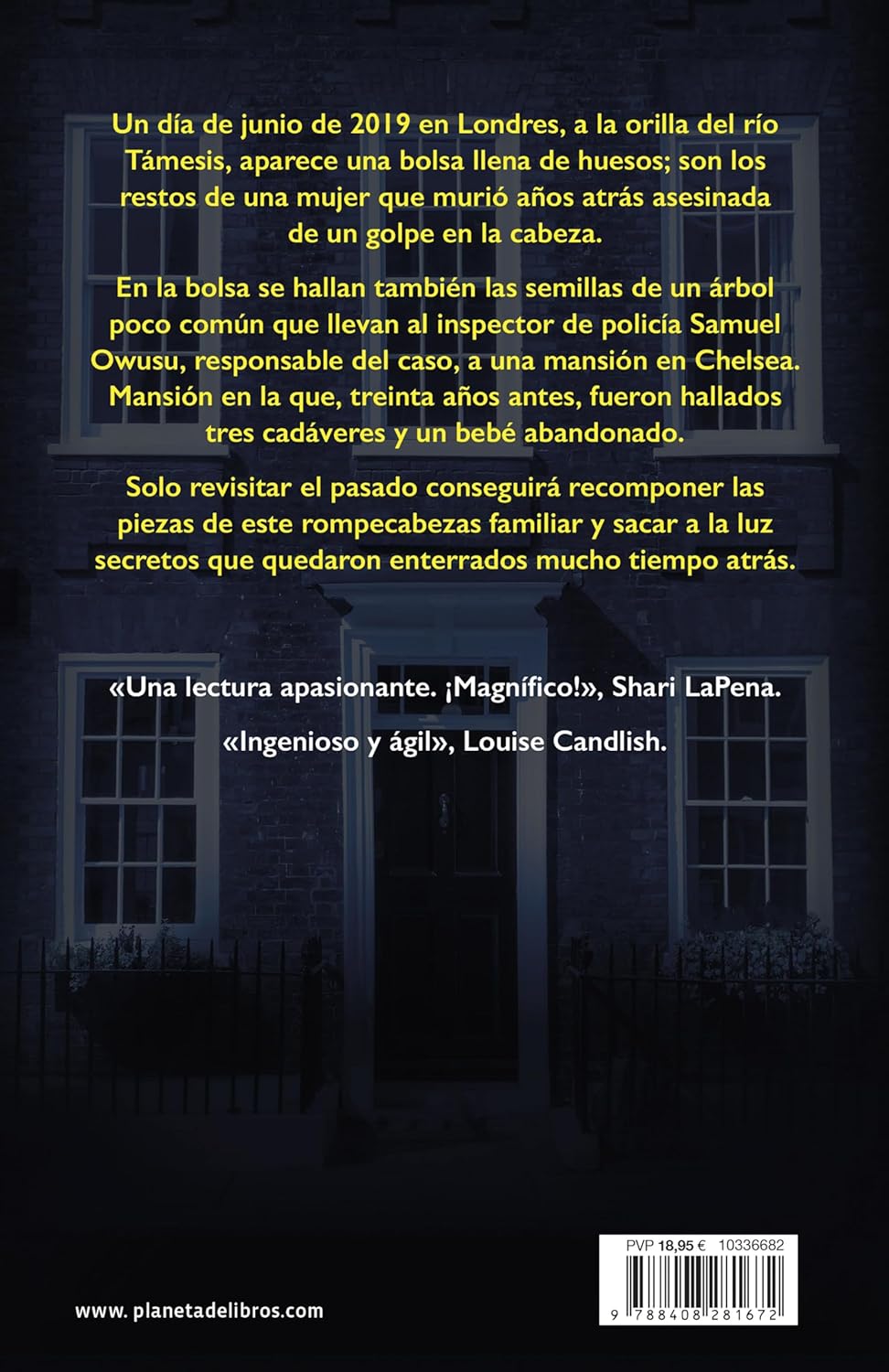 ✅- En la bolsa se hallan también las semillas de un árbol poco común que llevan al inspector de policía Samuel Owusu, responsable del caso, a una mansión en Chelsea. Mansión en la que, treinta años antes, fueron hallados tres muertos y un bebé abandonado.