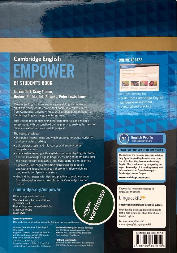 CAMBRIDGE ENGLISH EMPOWER FOR SPANISH SPEAKERS B1 STUDENT´S BOOK WITH ONLINE ASSESSMENT AND PRACTICE 9788490361979 CAMBRIDGE 2016 (NUEVO)