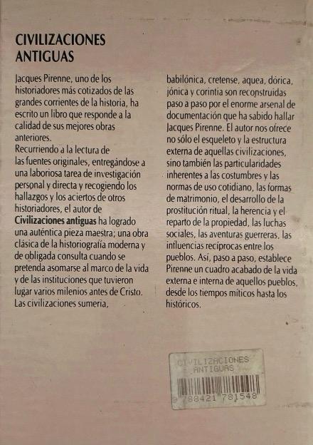 CIVILIZACIONES ANTIGUAS:-JACQUES PIRENNE 9788421781548 NOGUER Y CARALT 2006 (USADO)