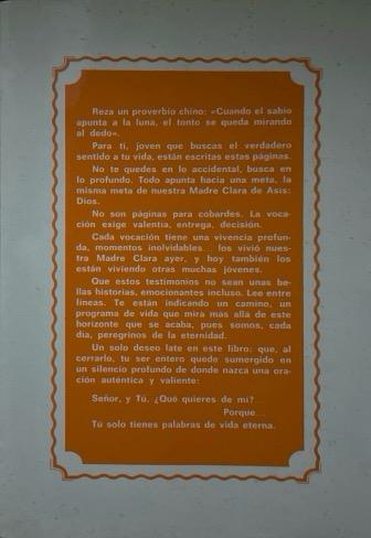 CLARA AYER Y HOY TESTIMONIOS VOCACIONALES 40 JÓVENES CLARISAS DESVELAN SU SECRETO 9788470093456 IMPRENTA ALDECOA 1991 (USADO)
