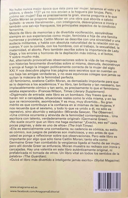 ✅-Ésa es precisamente la gran, eterna pregunta a la que Caitlin Moran se propone responder en una obra que aborda a calzón quitado ?✅-a veces literalmente?, con inteligencia, desvergüenza e ironía y también una salvaje franqueza, los principales aspectos de la condición femenina.