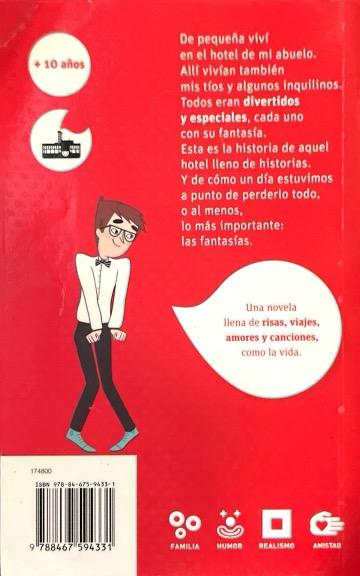 De pequeña viví en el hotel de mi abuelo. Allí vivían también mis tíos, y algunos inquilinos. Todos eran divertidos y especiales, cada uno con su fantasía. Esta es la historia de aquel hotel lleno de historias. Y de cómo un día estuvimos a punto de perderlo todo, o al menos, lo más importante: las fantasías. Novela finalista del Premio El Barco de Vapor 2016