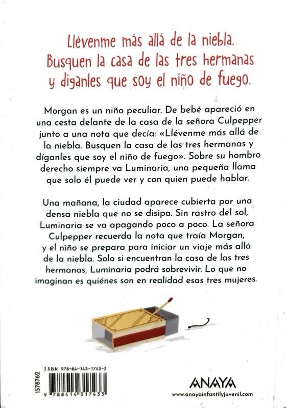 Morgan es un niño peculiar. De bebé apareció en una cesta delante de la casa de la señora Culpepper junto a una nota que decía: «Llévenme más allá de la niebla. Busquen la casa de las tres hermanas y díganles que soy el niño de fuego». Sobre su hombro derecho siempre va Luminaria, una pequeña llama que solo él puede ver y con quien puede hablar.