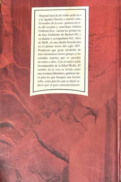 Sé el primero en valorar “EL NOMBRE DE LA ROSA:-UMBERTO ECO 9788447300006 RBA 1992 (USADO)”