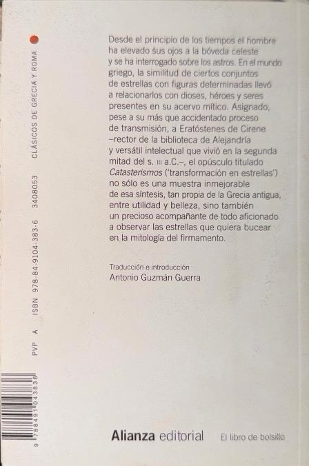 MITOLOGIA DEL FIRMAMENTO:- ERATÓSTENES 9788491043836 ALIANZA EDITORIAL 2016 (USADO)