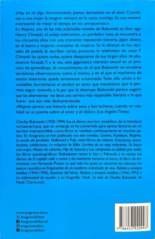✅-En Mujeres, una de las más aclamadas novelas de Bukowski, su alter ego Henry Chinaski, el «viejo indecente», un perdedor nato, se encuentra a los cincuenta años con una creciente reputación literaria, algún dinero en el banco y mujeres: montañas de mujeres.
