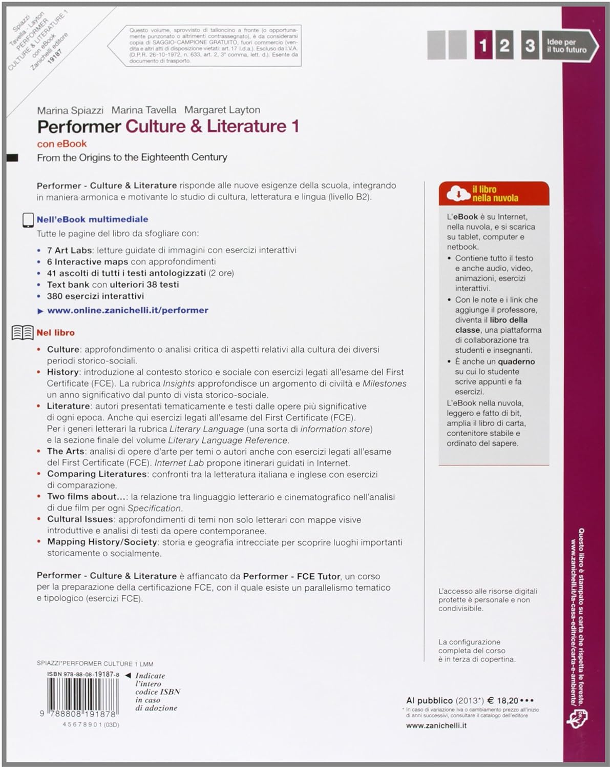 PERFORMER 1 CULTURE AND LITERATURE 9788808191878 ZANICHELLI 2012 (USADO)