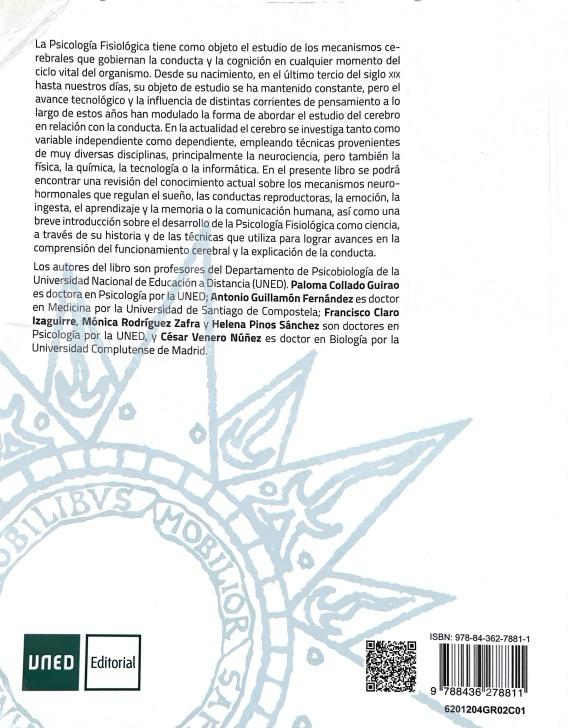 PSICOLOGÍA FISIOLÓGICA:-ANTONIO GUILLAMON FERNANDEZ 9788436278811 UNED 2024 (USADO)