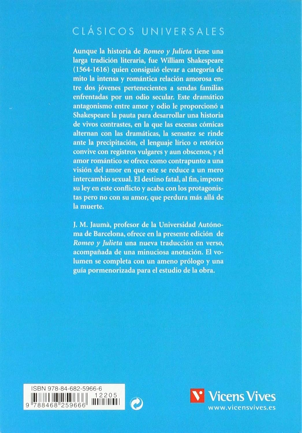 ROMEO Y JULIETA :CLÁSICOS UNIVERSALES N.º 04 WILLIAM SHAKESPEARE 9788468259666 VICENS-VIVES 2018 (USADO)