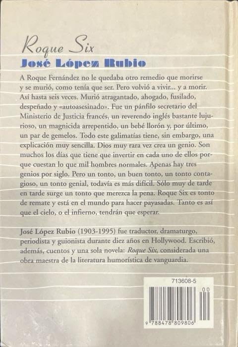 Este volumen, parte de la colección «Clásicos del Humor», presenta «Roque Six», una de las obras más representativas del ingenioso dramaturgo y guionista español José López Rubio.